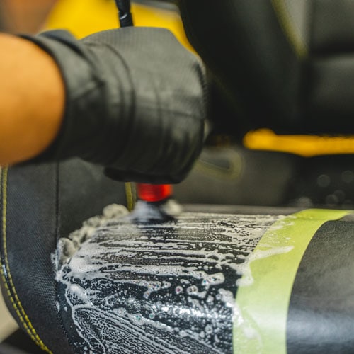 Remove personal items and vacuum the cabin thoroughly, especially under seats and between fabrics, to avoid water rings after drying.