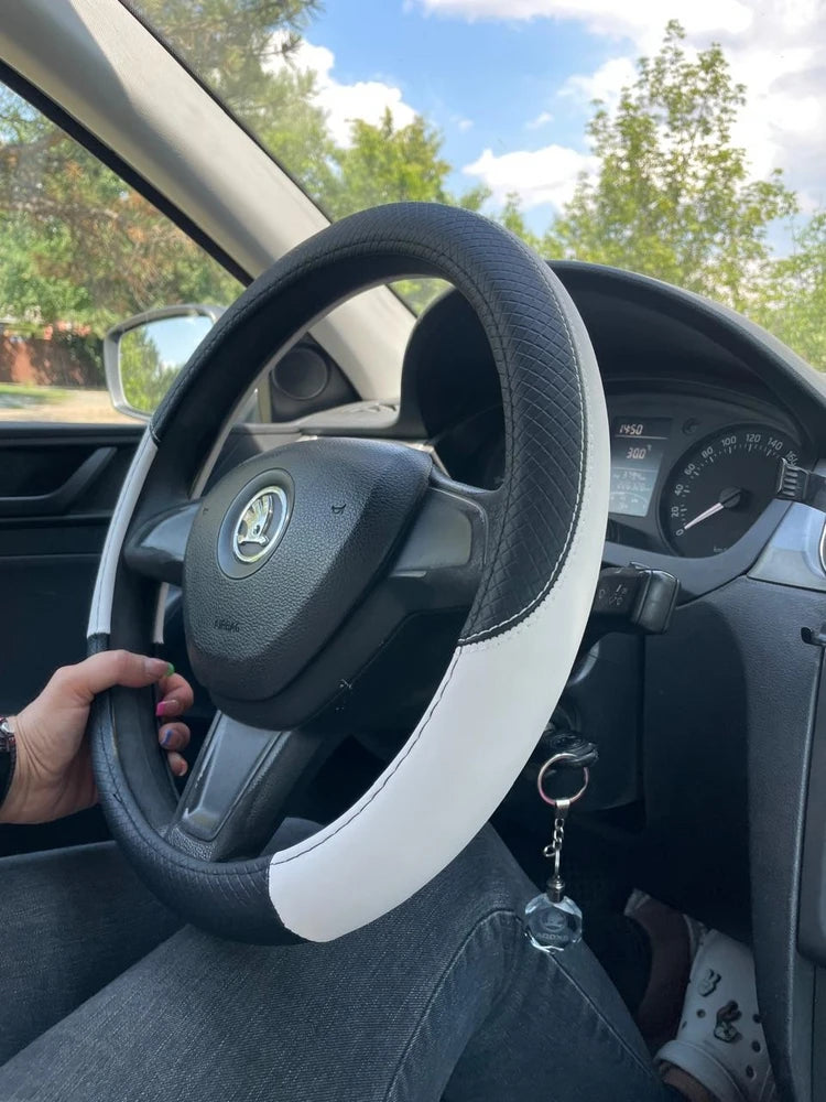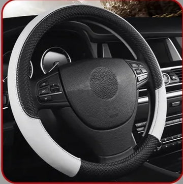 כיסוי הגה דמוי עור לבן/שחור מידה M