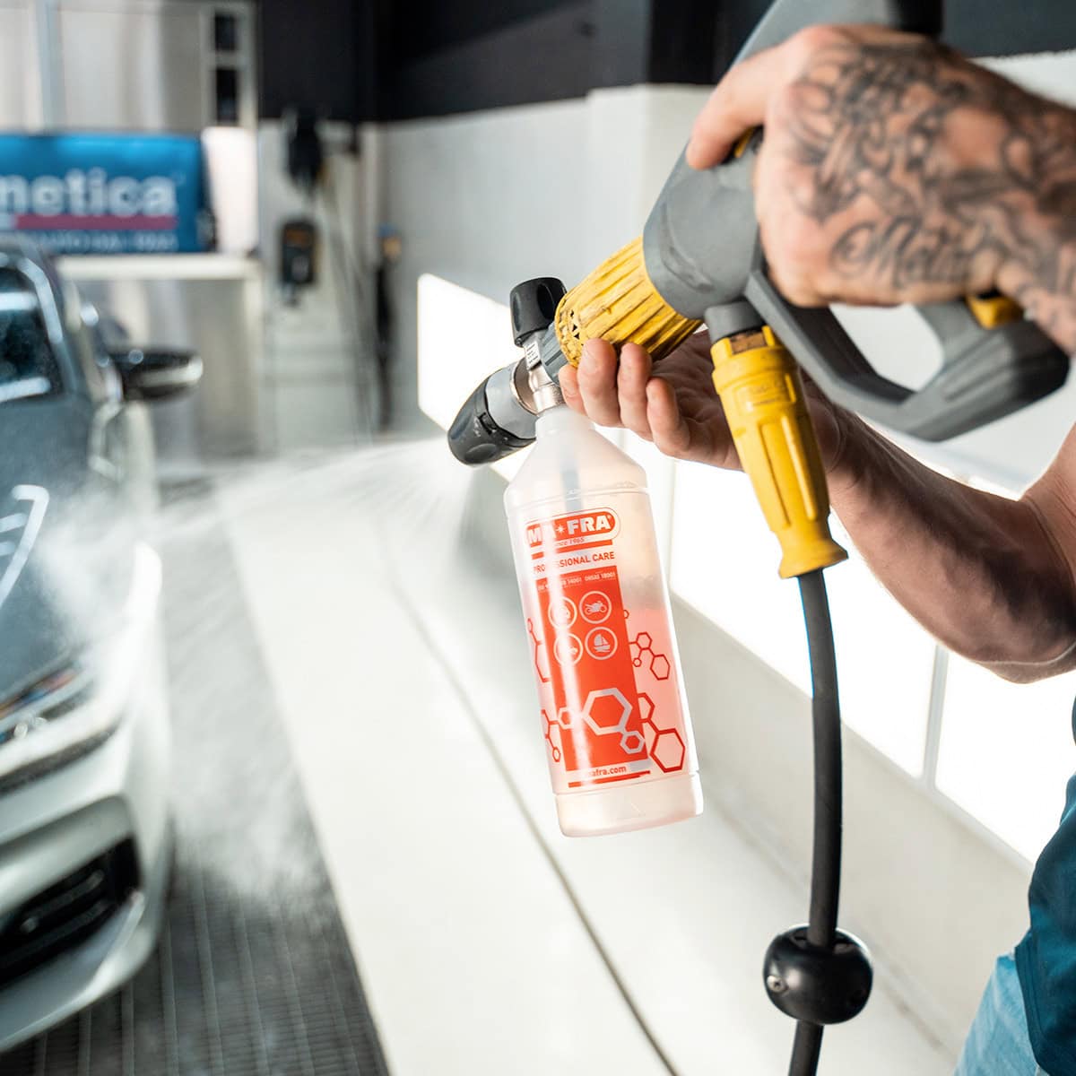 דילול 1:5-1:15 בהתאם למידת הזיהום או מצב הרכב, ואז רסס את הקצף על כל המשטחים הצבועים של הרכב + חישוקים + צמיגים באמצעות אקדח קצף.