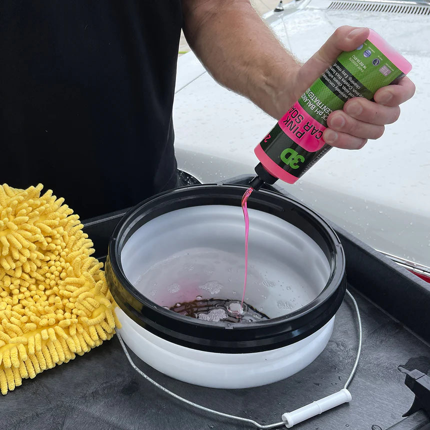 שמפו לרכב 3D Pink Car Soap. בניחוח דובדבן נעים ונוסחת pH מאוזנת, נועד לספק ניקוי יסודי וללא שריטות ועם זאת להיות עדין מספיק לגימור נטול שאריות וללא כתמי מים.
