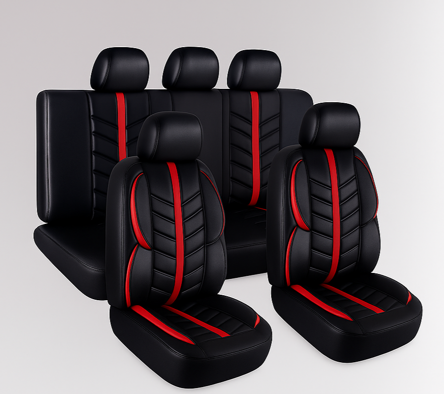 סט כיסויי מושבים ל־5 מקומות עם משענות ראש נפרדות. עשוי מדמוי עור איכותי. תואם לכריות אוויר צדיות (תפרים ייעודיים לפתיחה). התקנה קלה, חומר עמיד ועיצוב אלגנטי לנוחות ועמידות לאורך זמן.