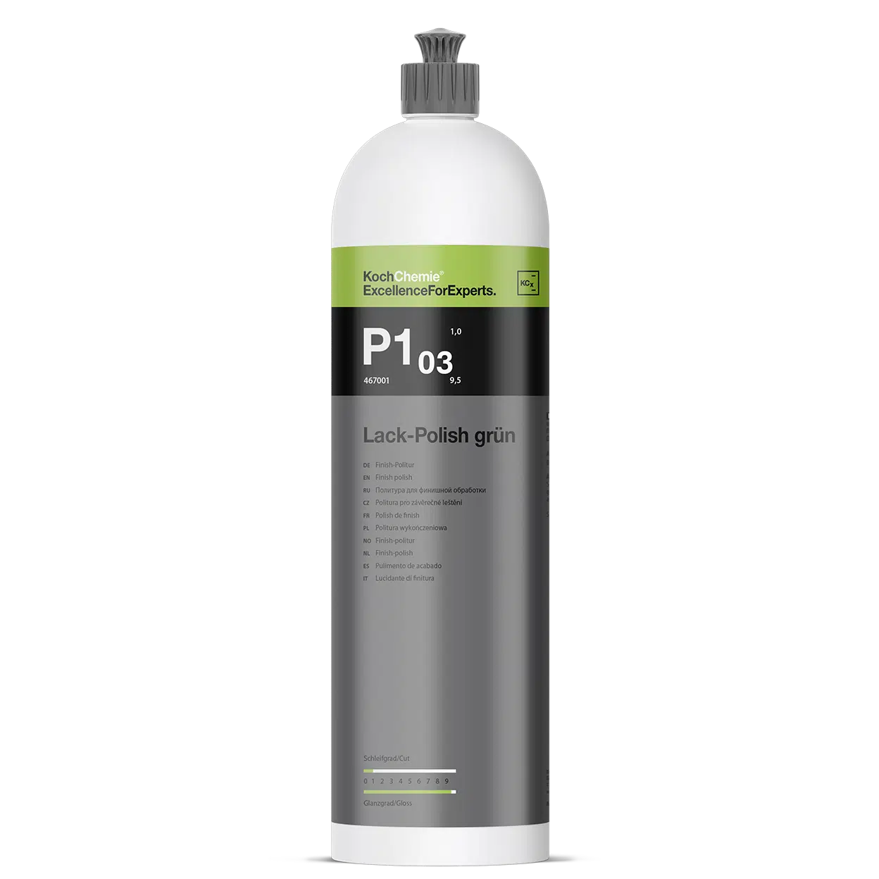 יישם את P1 בפס דק או בצורה מכנית (באופן אידיאלי עם פוליש אורביטלי) בעזרת אפליקטור שחור, או באופן ידני עם פד רך דומה. לסיום יש לשטוף את שאריות הפוליש למראה עם גימור בעזרת מטלית מיקרופייבר. אם נדרש אפקט שחיקה, השתמש בפוליש עם פד צהוב