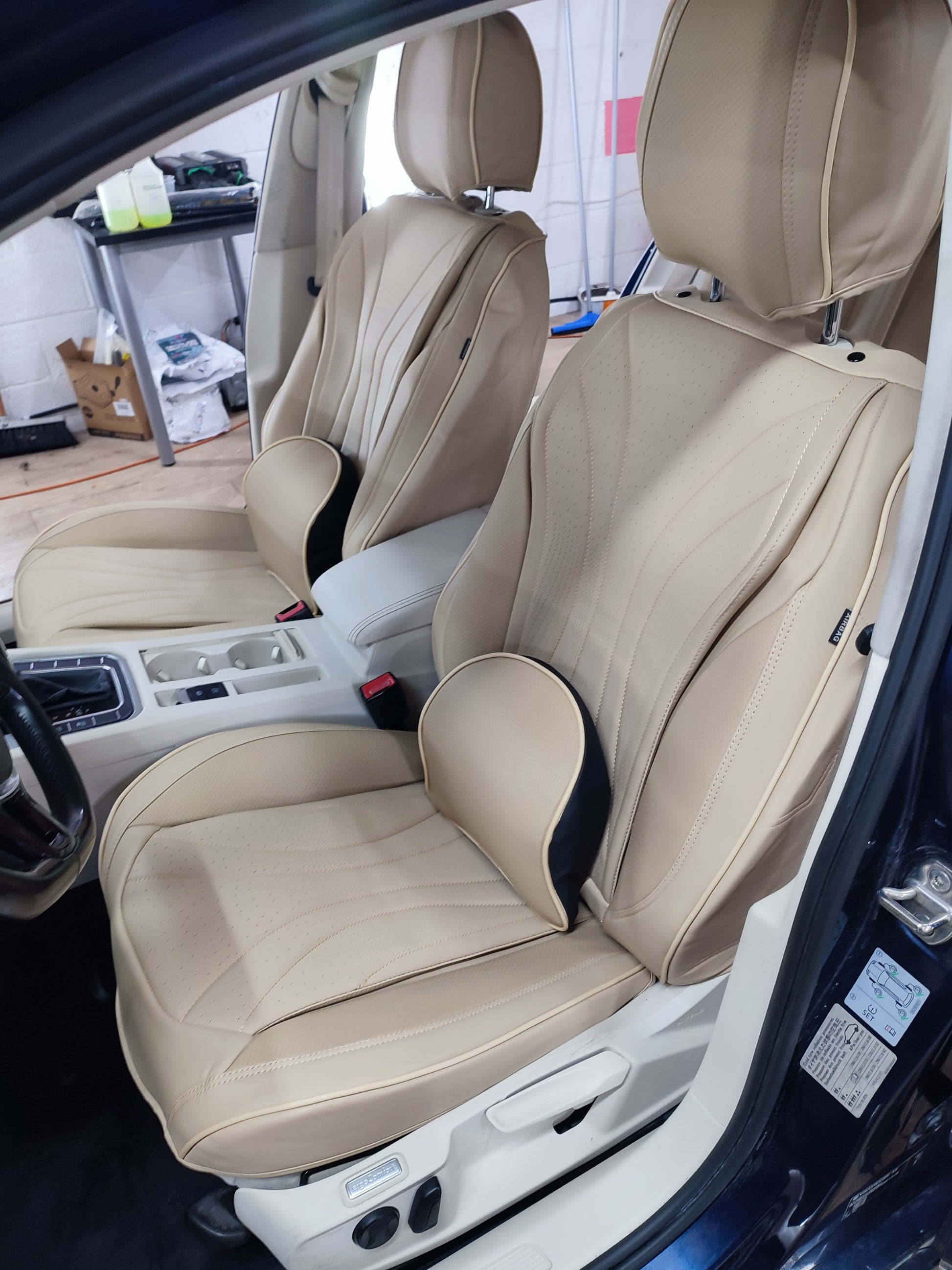 סט כיסויי מושבים פרימיום ל־5 מקומות עם משענות ראש נפרדות. עשוי מדמוי עור איכותי עם חירור לאוורור משופר. תואם לכריות אוויר צדיות (תפרים ייעודיים לפתיחה). כולל 4 כריות צוואר. דגם בלעדי בשוק. התקנה קלה, עיצוב יוקרתי וחומרים עמידים לאורך זמן.