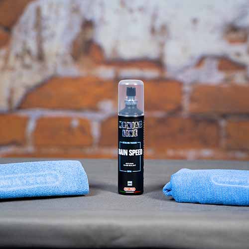 3️⃣ Нанесение RAIN SPEED: убедитесь, что стекло полностью сухое. Распылите средство равномерно и распределите сухой микрофиброй горизонтальными и вертикальными движениями.