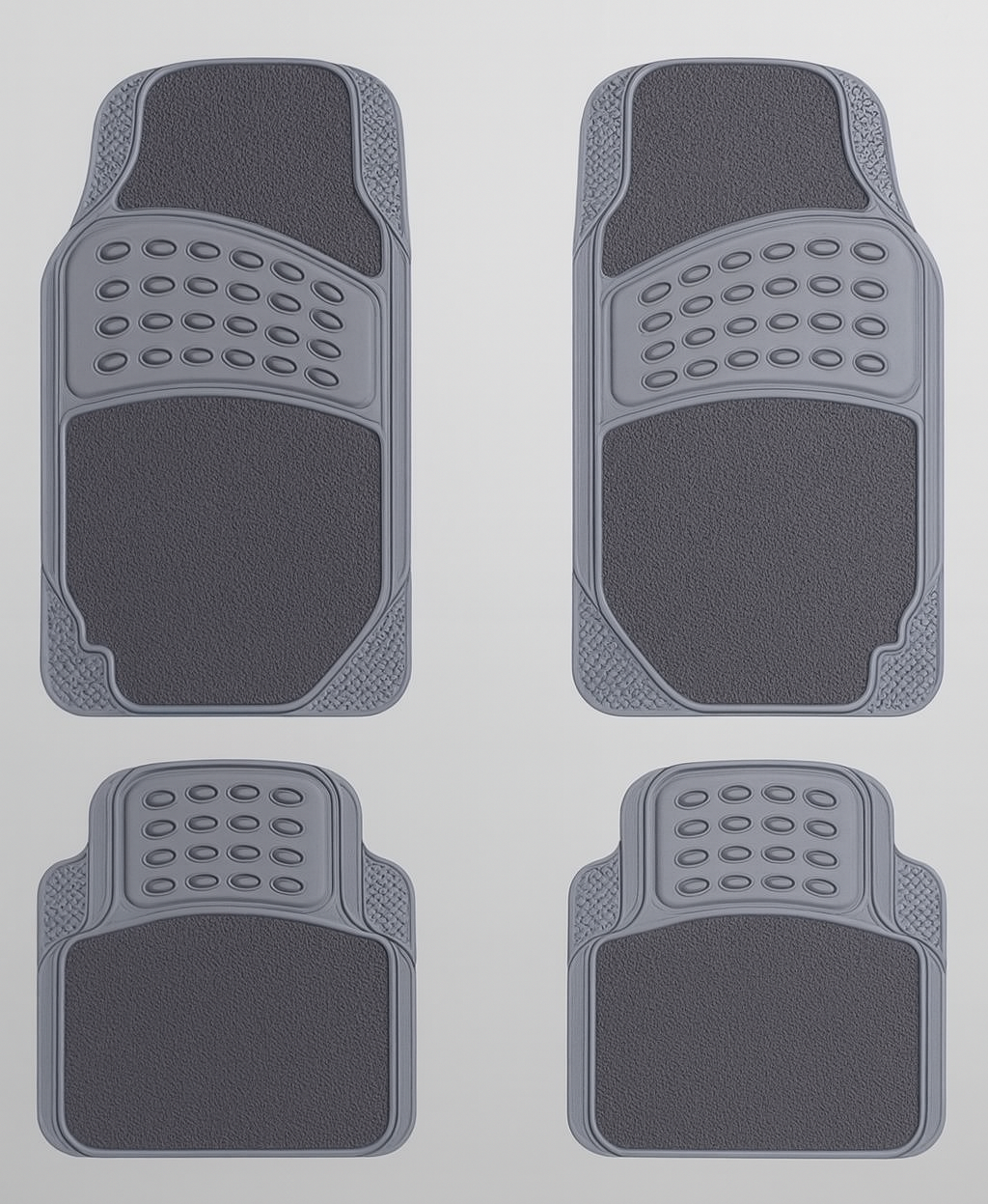 Комплект автомобильных ковриков из 4 частей (2 передних + 2 задних), изготовленных из прочной комбинации резины и ткани. Обеспечивают надёжную защиту от влаги, грязи и пыли, сохраняя аккуратный внешний вид и комфорт ткани. Противоскользящий дизайн с усиленными зонами гарантирует долговечность и удобство.